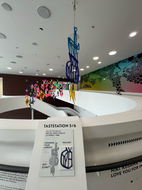 Ein zentraler Bestandteil der Ausstellung waren Werke der französischen Künstlerin Niki de Saint Phalle, insbesondere ihre bekannten „Nanas“. Ihre Verbindung zu Hannover ist bis heute sichtbar, da sich drei dieser Figuren dauerhaft am Leibnitzufer befinden und bei ihrer Aufstellung damals für sehr viel Aufregung sorgten. Das Sprengel Museum konnte im Rahmen der Ausstellung auf einen umfangreichen Bestand ihrer Arbeiten zurückgreifen, was sich auch in Form von begehbaren Nanas spannend widergespiegelt hat.
