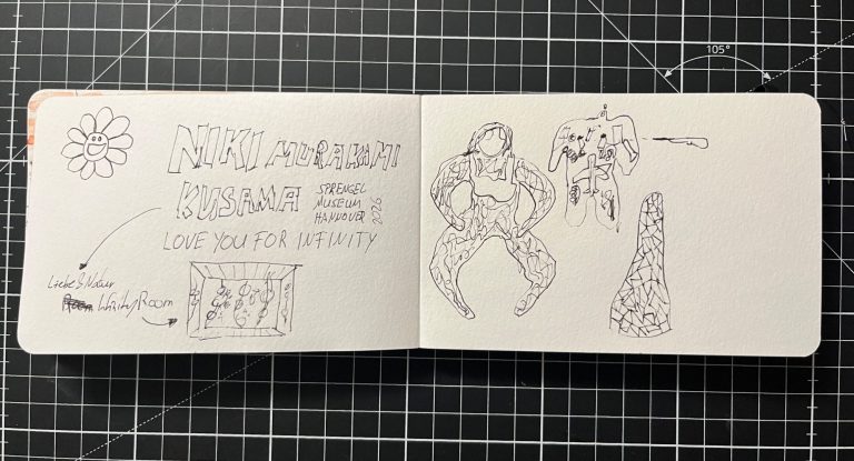 Am 30. Januar unternahmen wir im Rahmen des Kurses "Zeichnen für Anfänger*innen" eine Exkursion nach Hannover, bei der wir sowohl das Sprengel Museum als auch den Kunstverein Hannover besucht haben. Im Sprengel Museum setzten wir uns mit der Ausstellung „NIKI. KUSAMA. MURAKAMI. LOVE YOU FOR INFINITY“ auseinander. Viele der Werke der drei Künstler*innen sind bereits durch pokulturelle Einbettungen wie eine Kollaboration mit Louis Vuitton o.ä. bekannt. Auch die typischen Blumen mit Gesichtern machen einen klaren Wiedererkennungswert aus.