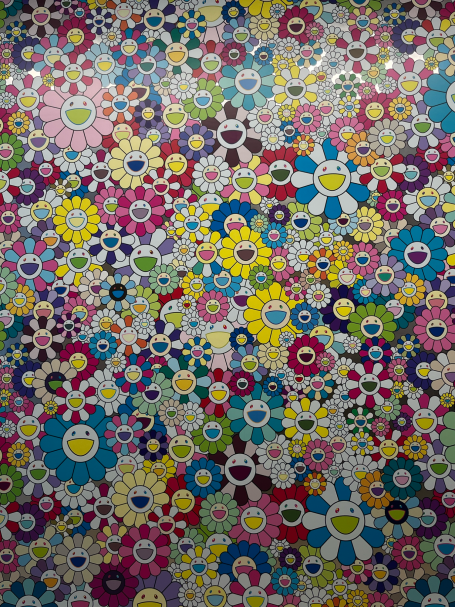 Die Arbeiten von Takashi Murakami greifen ebenfalls auf wiederkehrende Motive zurück, etwa die ikonischen lächelnden Blumen. Sein Stil verbindet Elemente der japanischen Tradition mit Einflüssen der Popkultur, wie obig bereits beschrieben. Inhaltlich bewegen sich einige Werke zwischen spielerischer Comic-Ästhetik, sexuellen Anspielungen und gesellschaftskritischen Aussagen.