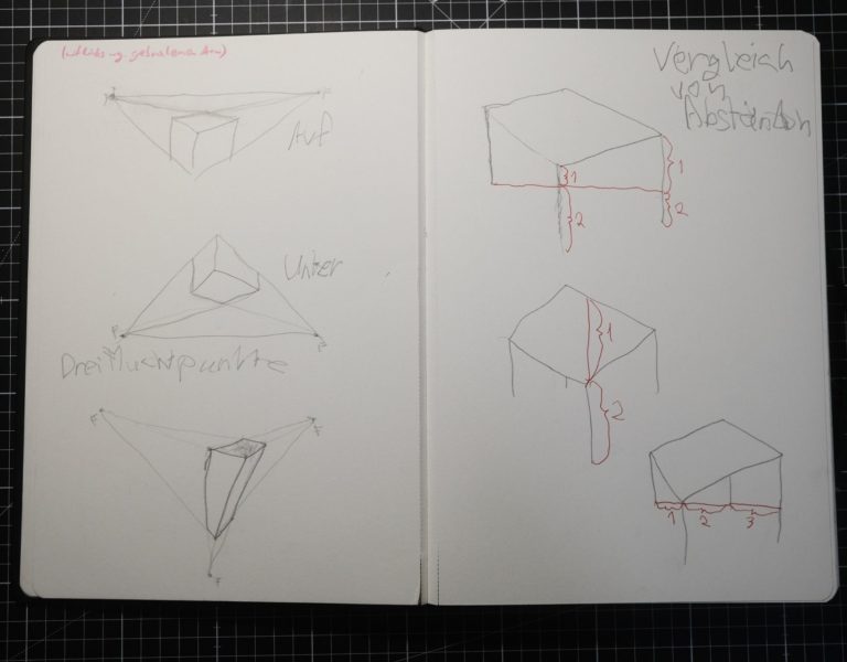 Dreipunktperspektive & Vergleich Abstände (Bleistift)