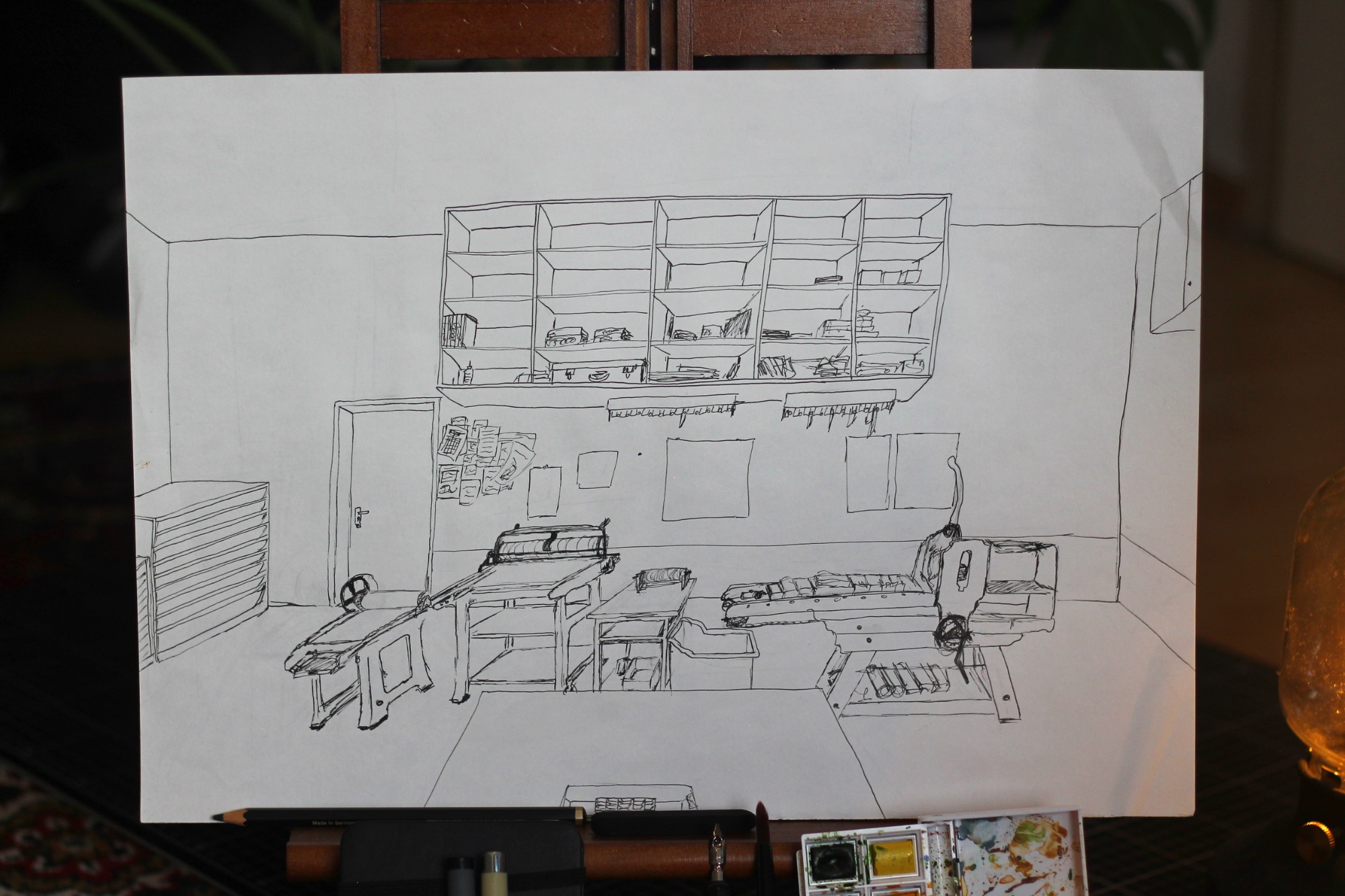 Raumzeichnung – Druckwerkstatt UOL (Pigment Liner)