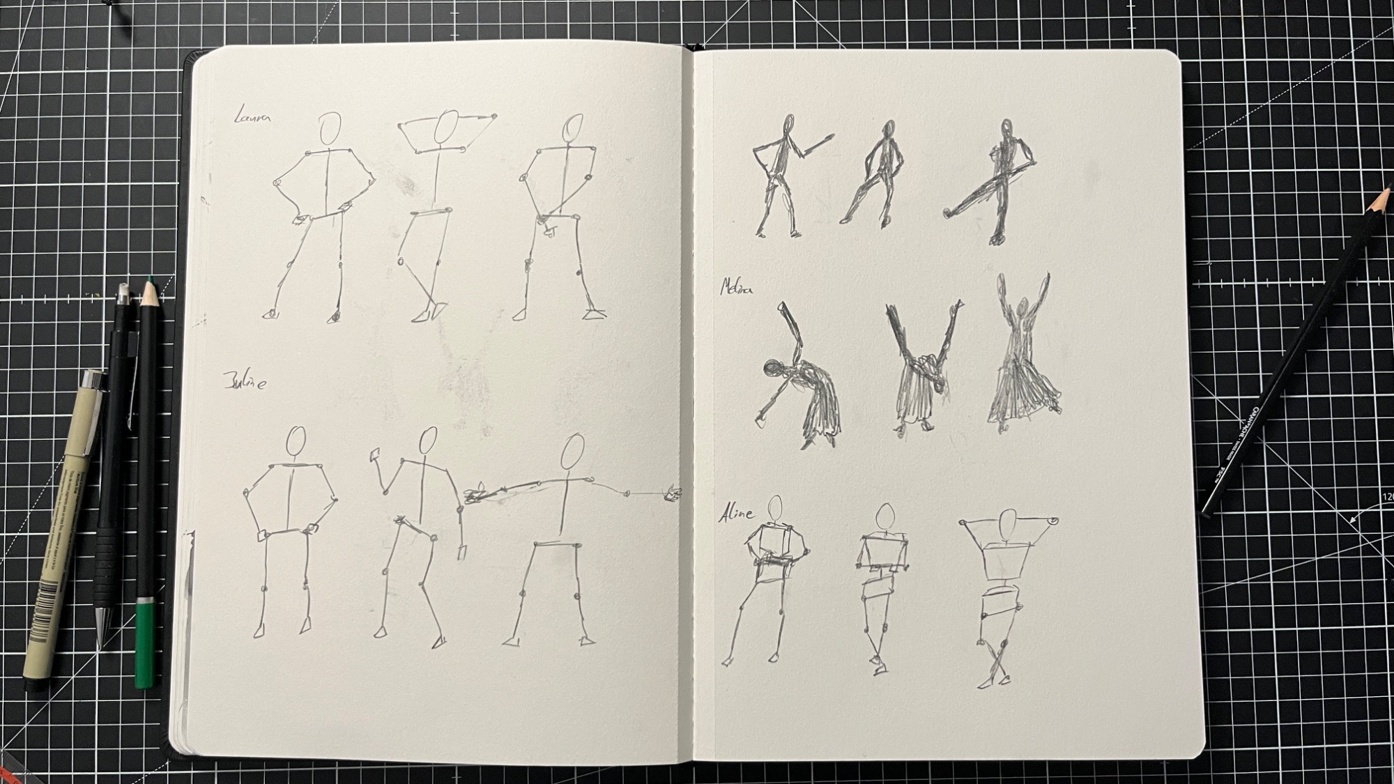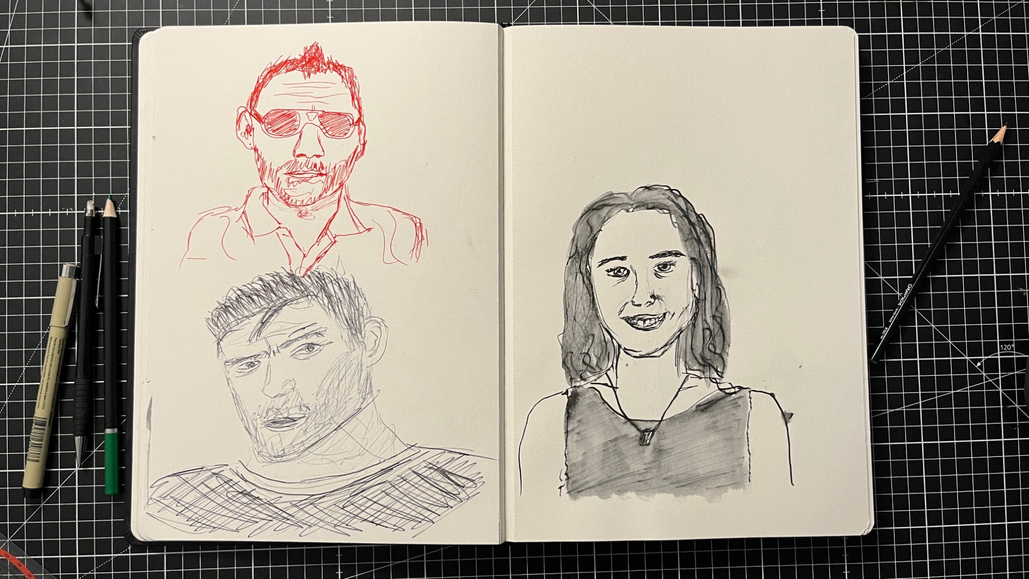Das Skizzenbuch diente als stetiger Ort für Zeichnungen jeglicher Art. Vor allem schnelle Skizzen lassen sich in dieser Form festgehalten finden. Zwar ist für den täglichen Gebrauch ein kleineres Buch leichter zum "in die Tasche werfen", jedoch lassen sich in einem Buch dieser Größe die einzelnen Zeichnungen bewusster platzieren und Zeichnungen über zwei Seiten diese raumfüllend einnehmen.